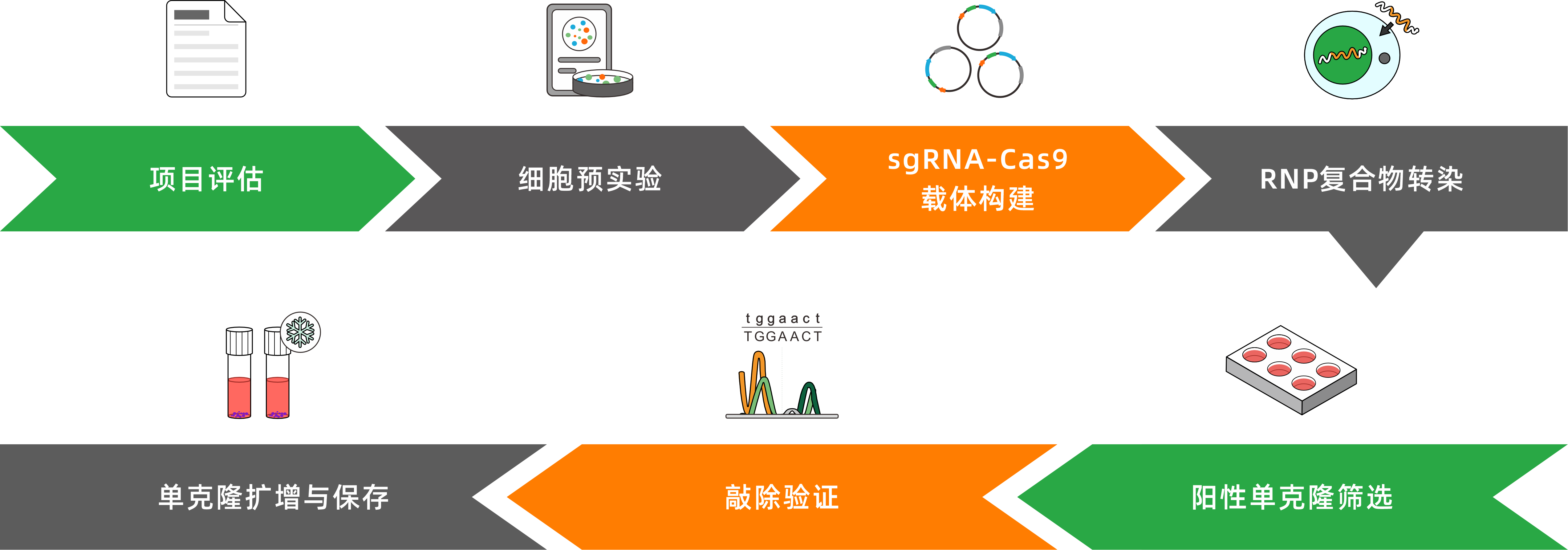 | 交付标准 | 基因敲除单克隆细胞≥1株(2管细胞/株,1×106/管) |